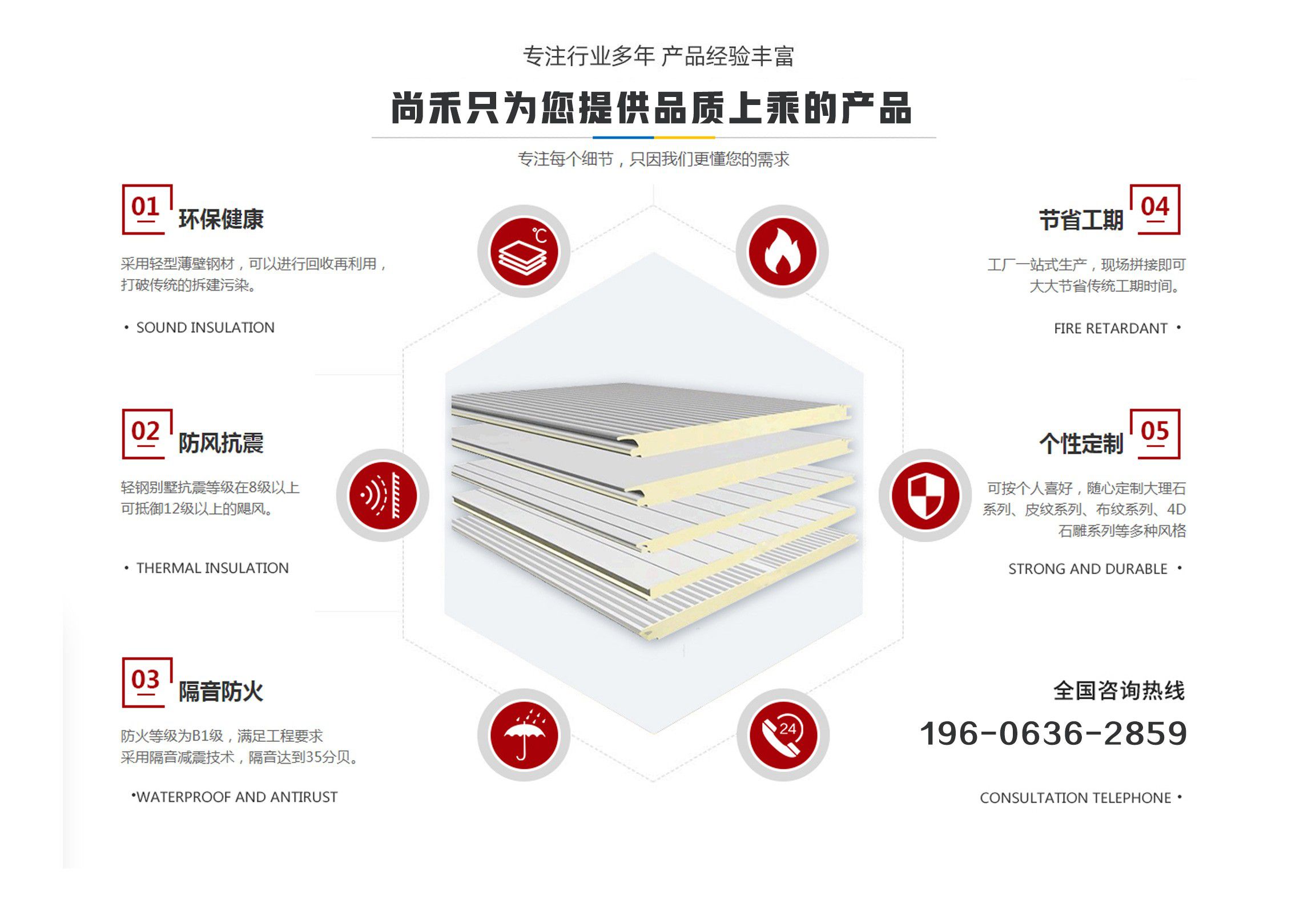 山東尚禾經(jīng)貿(mào)有限公司是集板材設(shè)計(jì)、研發(fā)、生產(chǎn)、施工、一體化的科技公司,并在同行業(yè)中率先通過了質(zhì)量、環(huán)境、安全管理體系認(rèn)證。公司2011年投入資金2000余萬元引進(jìn)世界先進(jìn)的聚氨酯節(jié)能板連續(xù)生產(chǎn)線、意大利進(jìn)口發(fā)泡系統(tǒng),采用六組份在線自動(dòng)操作混合澆注技術(shù),在線一次性完成社會(huì)配料中心或工廠的配比混合工藝,并可以根據(jù)溫度在線自動(dòng)調(diào)整,從而生產(chǎn)處與眾不同的高強(qiáng)度、節(jié)能型、綠色環(huán)保的聚氨酯夾芯板。(其使用年限高于同行業(yè)其他品牌5-10年) 公司主要經(jīng)營(yíng)范圍包括聚氨酯夾芯板,PU夾芯板,冷庫板,潔凈板,聚氨酯冷庫板,冷庫保溫板的設(shè)計(jì)、生產(chǎn)、銷售、技術(shù)指導(dǎo)、安裝及一體、以及進(jìn)出口業(yè)務(wù),是中部六省最大的綠色節(jié)能建材生產(chǎn)基地。聚氨酯夾芯板年產(chǎn)200萬平方米、PU夾芯板、冷庫保溫板500萬平方米、鏈整產(chǎn)業(yè)綜合實(shí)力,開創(chuàng)了六省至中西部創(chuàng)新型中小名企總部基地,并將著力推進(jìn)中國中西部地區(qū)集成房屋住宅產(chǎn)業(yè)化發(fā)展進(jìn)程。 科技創(chuàng)新、節(jié)能典范。千萬間始終秉承“誠信、合作”的企業(yè)文化精髓,長(zhǎng)期致力于鋼板材結(jié)構(gòu)節(jié)能建筑產(chǎn)業(yè),愿與社會(huì)各界攜手合作,共鑄綠色、環(huán)保美好未來。 產(chǎn)品具有良好的絕熱、阻燃、隔音、環(huán)保、耐久性能,可廣泛應(yīng)用于工業(yè)、商用建筑內(nèi)外墻、以及民用建筑外墻保溫、空調(diào)通風(fēng)系統(tǒng)、專用防火保溫門等領(lǐng)域。 我們始終秉承...